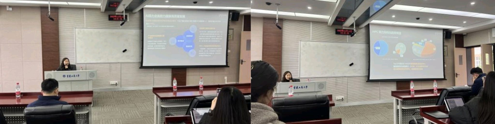 2023年12月12日下午2:30,Mksport体育邀请中科曙光的欧远洲、曲晓宇两位企业代表,在明智楼405教室举办了以“深算新能力,数智新动力”为主题的学术讲座。本次活动由秦华锋经理主持,全体研一、研二年级员工到场参加。
