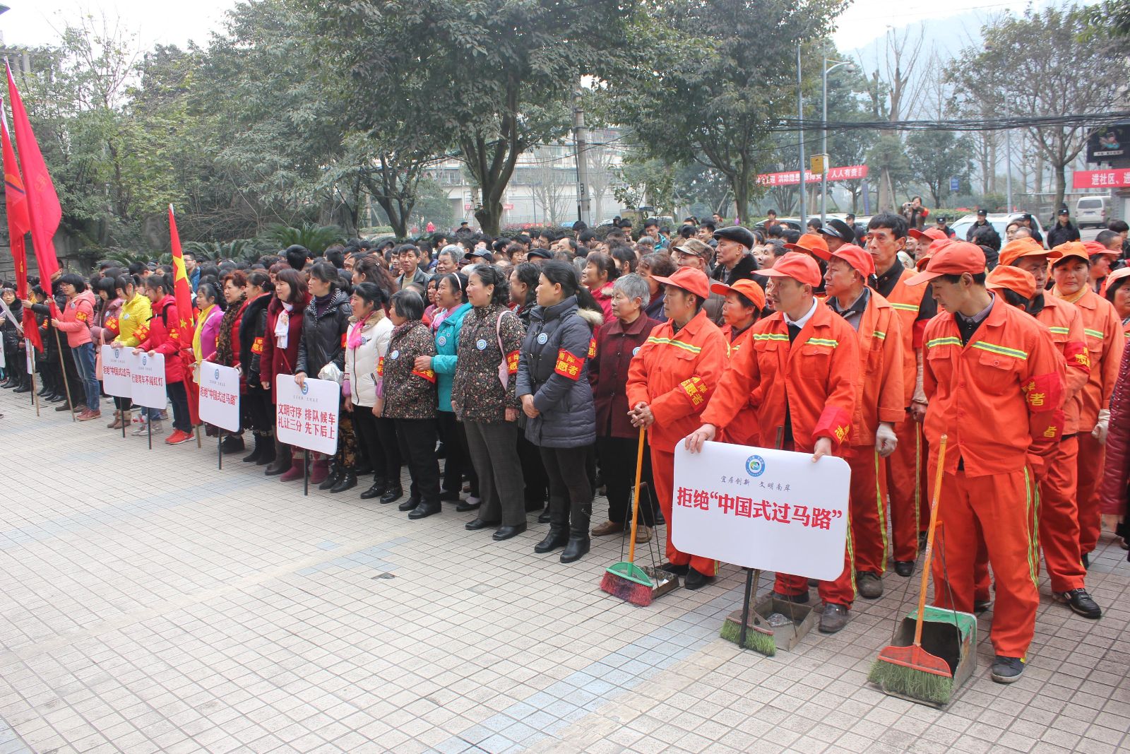 500多名来自南岸区各行各业的志愿者们在南岸区街道办参加活动启动仪式