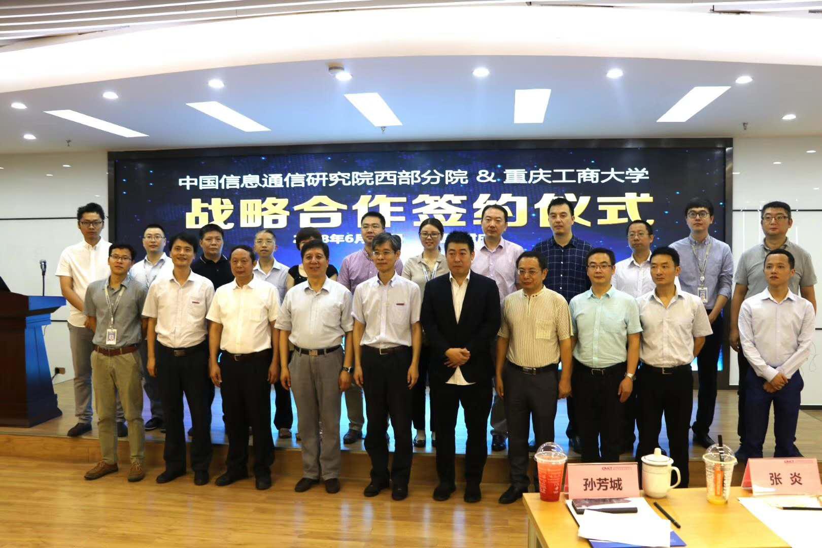 2018年6月30日上午9:30,公司与中国信息通信研究院西部分院(重庆信息通信研究院)在南岸区物联地带•渝报告厅举行了战略合作签约仪式,董事长孙芳城教授与张炎副经理共同签署了战略合作协议。中国信息通信研究院副经理何桂立,中国信息通信研究院西部分院副经理张炎,公司董事长孙芳城教授,Mksport体育、Mksport体育分党委书记段远鹏教授、经理何希平教授、副经理杨光祥教授、副经理胡卫军副教授以及公司相关专业系主任、人工智能研究院相关研究所所长等专家共同出席并见证了签约仪式。