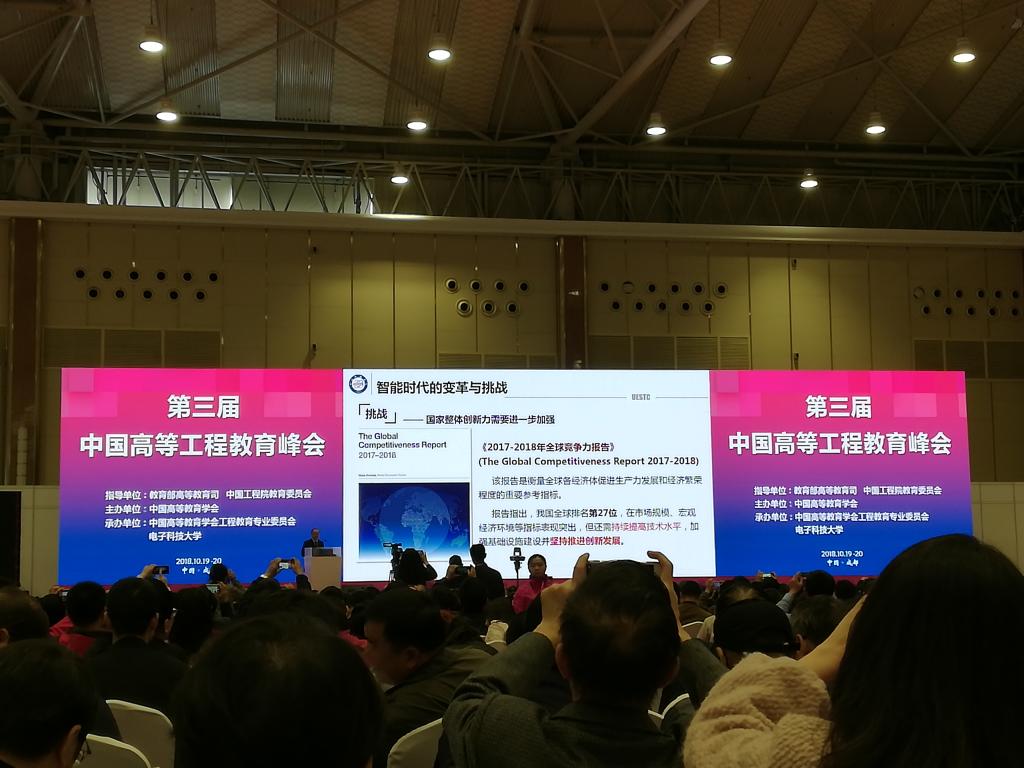 本次教育峰会是中国高等教育博览会(2018•秋)的重要组成部分,以“新时代一流工程教育建设:创新与行动”为主题,召开了46场学术报告,开展了11场对话交流活动。公司教师参加了传统工科专业升级与改造、新工科专业布局与建设、课堂革命与教学创新、现代产业公司与未来技术公司建设、创新创业教育与竞赛活动、工程专业认证与本科专业类教学质量国家标准的实施等六个主题论坛的活动。