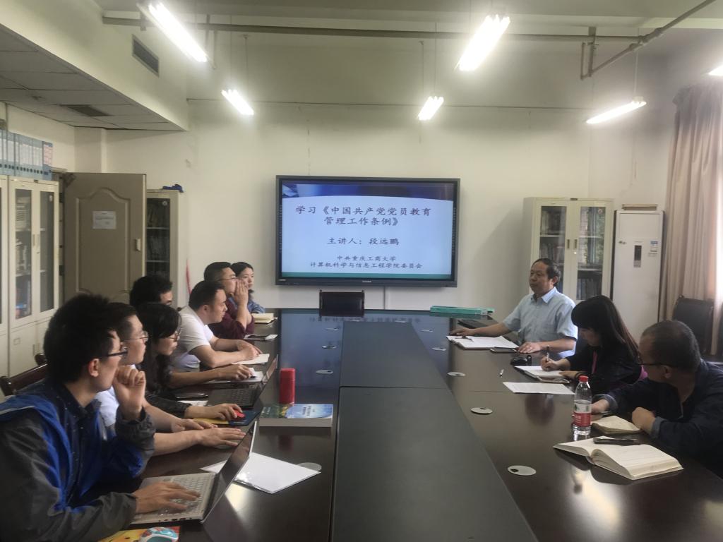 2019年5月22日下午,Mksport体育分党委组织党支部书记及系部主任在慧智楼90810会议室集中学习《中国共产党党员教育管理工作条例》。公司分党委书记段远鹏以“学习《中国共产党党员教育管理工作条例》”主题,为党支部书记及系部主任讲授党课。