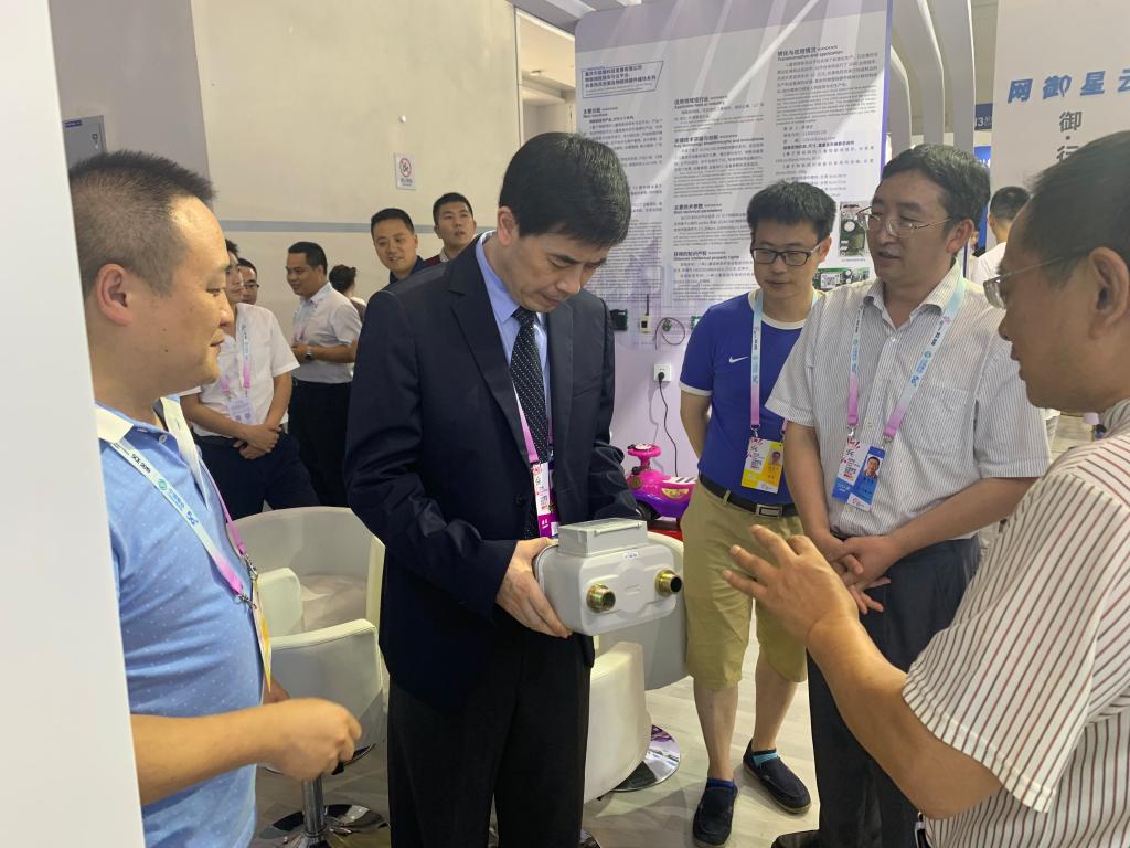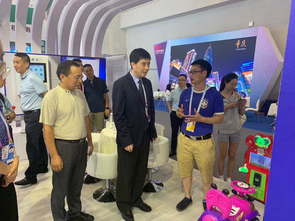 在公司和科研处的大力支持下,本次公司参展的有江朝元、曹晓莉教授共同开发的智能生态物联网系统,王向乔老师开发的红外数传膜式燃气表和燃气企业管理平台,李德文、陈明杰老师开发的物联网摇摇车与云平台系统,陈旭东老师参与开发的智能农业物联网系统等科技转化成果。重庆市副市长屈谦、重庆市教育委员会主任舒立春、重庆市教委科学技术处蒋云芳处长莅临展位指导。公司孙芳城董事长和柏群副董事长也亲临关心和指导参展工作。