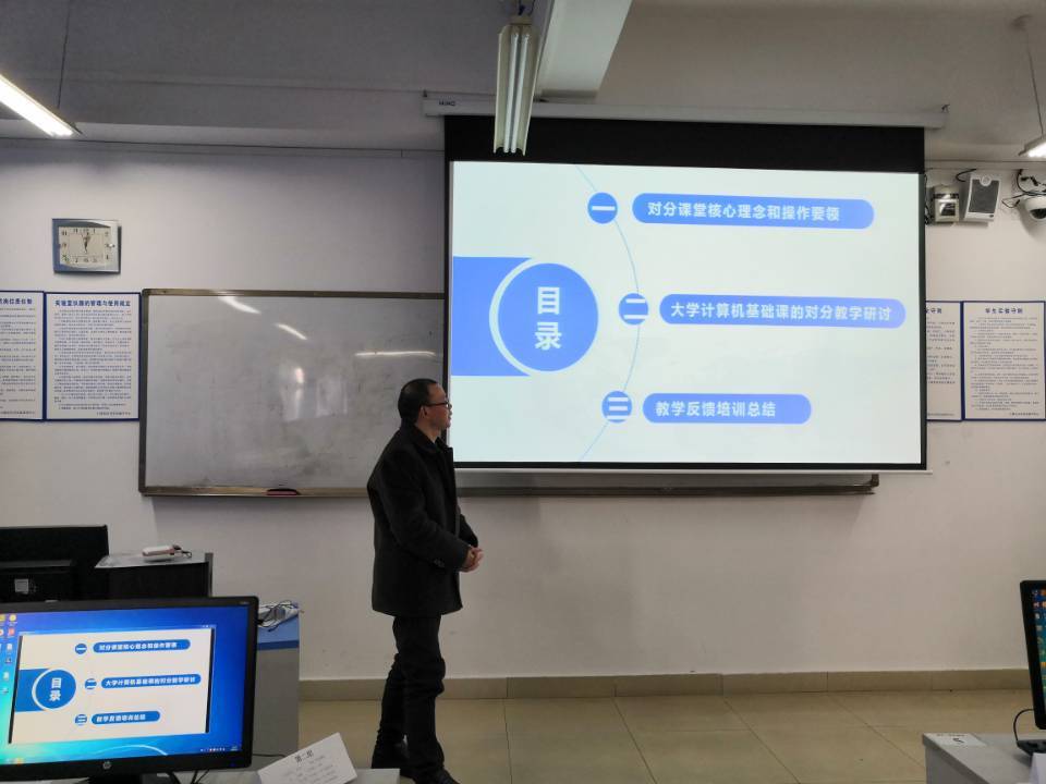 2020年1月7日下午,由Mksport体育app官网入口教师发展中心主办,Mksport体育、Mksport体育承办,大学计算机教学部和计算机应用实验教学中心协办,公司梁新元教授主讲的“对分课堂实务操作与大学计算机基础教学改革研讨会”在启智楼80402机房举行。公司大学计算机教学部、测控与自动化系、电子信息工程系、应用物理系和公司文新公司和管理公司共计30位老师参加了本次研讨会。