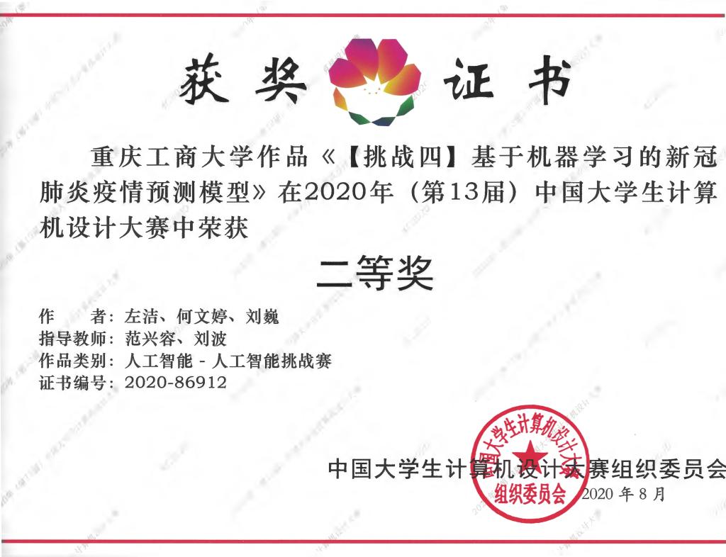 《【挑战四】基于机器学习的新冠肺炎疫情预测模型》(作者:左洁、何文婷、刘巍,指导老师:范兴容、刘波)获得全国二等奖