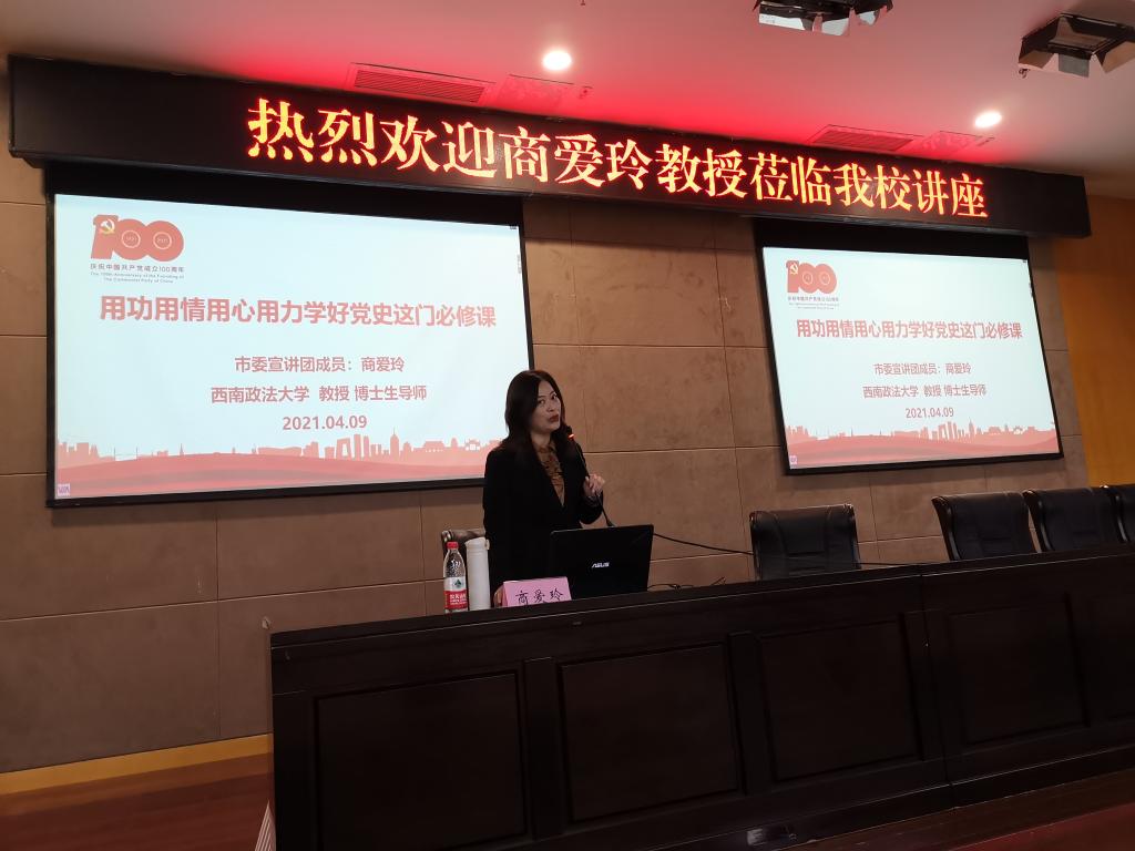2021年是中国共产党成立100周年,百年征程波澜壮阔,以史鉴今砥砺前行!为深入学习贯彻习近平总书记在党史学习教育动员大会上的重要讲话精神,扎实开展党史学习教育,引导广大党员学史明理、学史增信、学史崇德、学史力行,迈进新征程、奋进新时代。Mksport体育(计信公司)特邀重庆市委宣讲团成员、西南政法大学教授、博士生导师商爱玲作题为“用功用情 用心用力 学好党史这门必修课”党史学习教育专题党课讲座。公司党政领导班子、全体党员,以及发展对象、积极分子代表等150余人聆听讲座。公司党委书记何希平教授主持讲座。