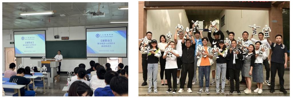 “智能服务机器人应用工程师”直接负责智能服务机器人的需求反馈、应用推广及调试维修,是推动智能服务机器人产业发展的重要人才支撑;“智能服务机器人应用工程师”的职业技能鉴定标准中要求对智能服务机器人关键模块集成、人机交互、综合联调、智能感知技术、场景应用技术、文案设计、商务策划等多学科专业技术都要熟练掌握并灵活应用。公司引入相关课程,加大“智能服务机器人应用工程师”人才的培养,正是体现公司“商工融合”人才培养特色的一个亮点。