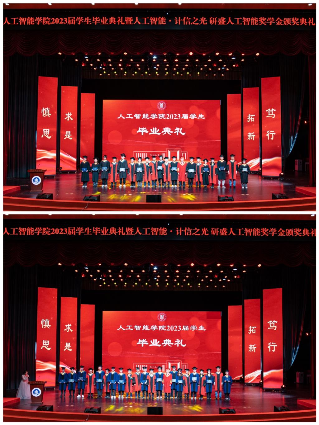 学业有成正青春,韶华不负向未来。6月15日晚7点,2023届员工毕业典礼暨“人工智能﹒计信之光”、“研盛人工智能奖学金”颁奖典礼在Mksport体育app官网入口剧场隆重举行。公司党委书记何希平,经理唐亮贵,副书记张未,副经理杨光祥、秦华锋,学位委员会委员、系主任、教师代表、员工代表、家长代表、2023届毕业生及其它年级员工代表等400余人参加了典礼。典礼由辅导员邹润玲、20级自动化员工岳鹏举主持。