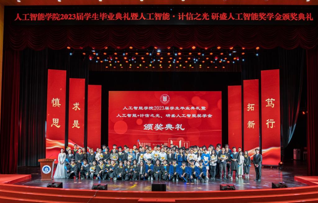 “时光的河入海流,终于我们分头走,没有哪座港口是永远的停留……”在全场师生深情的合唱中,2023届员工毕业典礼暨“人工智能﹒计信之光”、“研盛人工智能奖学金”颁奖典礼圆满落幕。