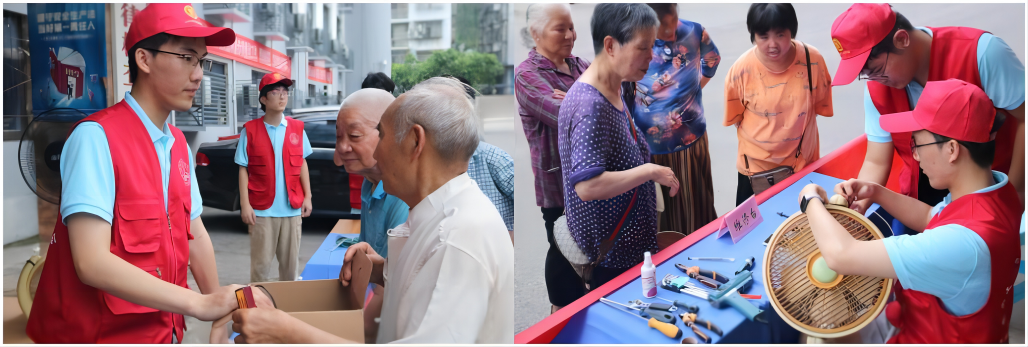 7月13日晚上,热浪还未褪去,夜晚的政府广场已是人流涌动。经过前期的宣传与介绍,居民们纷纷拿来了家中故障电器,有风扇、破壁机、音响、热水壶等。实践团热情接待并仔细询问情况,其中“小红帽”家电维修协会的同学们运用学到的电路知识和操作技巧对电器进行了一一检修。在等待维修期间,同学们为村民耐心答疑解惑并科普电器的日常维护保养方法。活动现场气氛融洽,成员们认真维修每一件电器,用实际行动诠释当代青年的责任与担当。