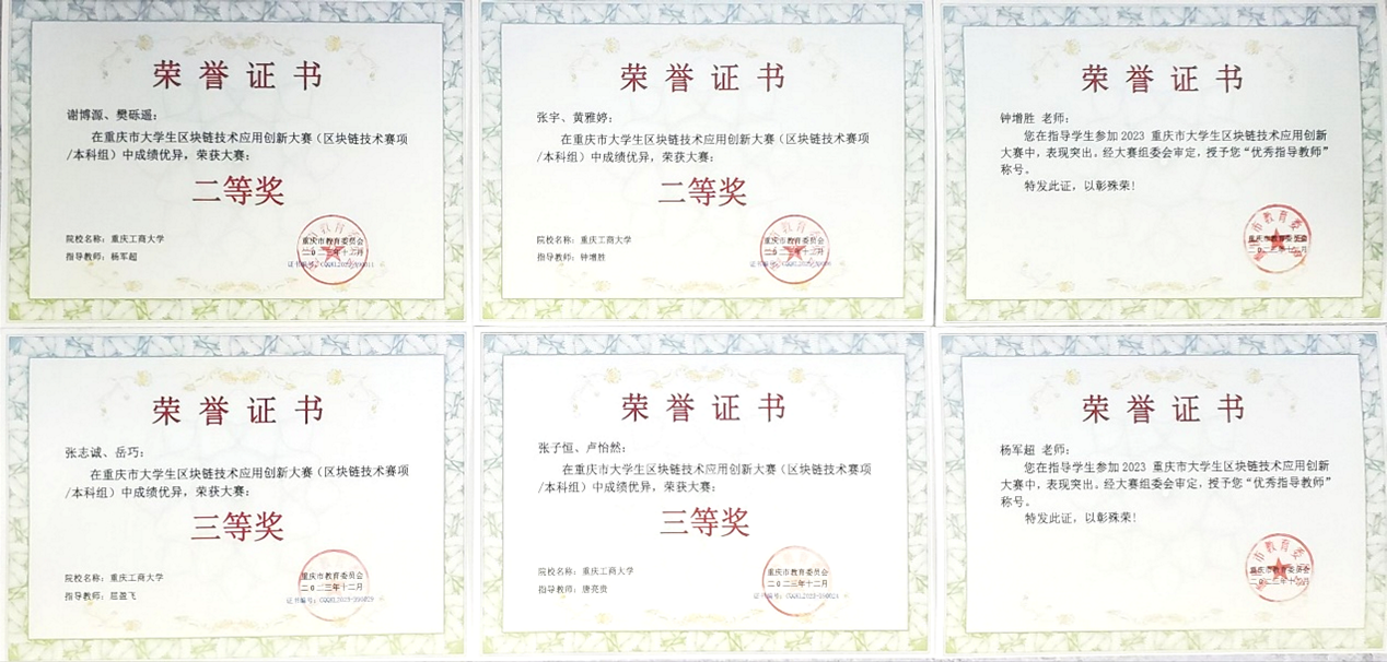 2023年12月,重庆市教育委员会主办,重庆城市科技公司承办的2023年重庆市老员工区块链技术应用创新大赛圆满落幕。在智能感知与区块链技术重庆市重点实验室的支持下,Mksport体育经过选拔,组织了4支队伍参加重庆市区块链大赛的技术组比拼,最后全部获奖,成绩斐然。