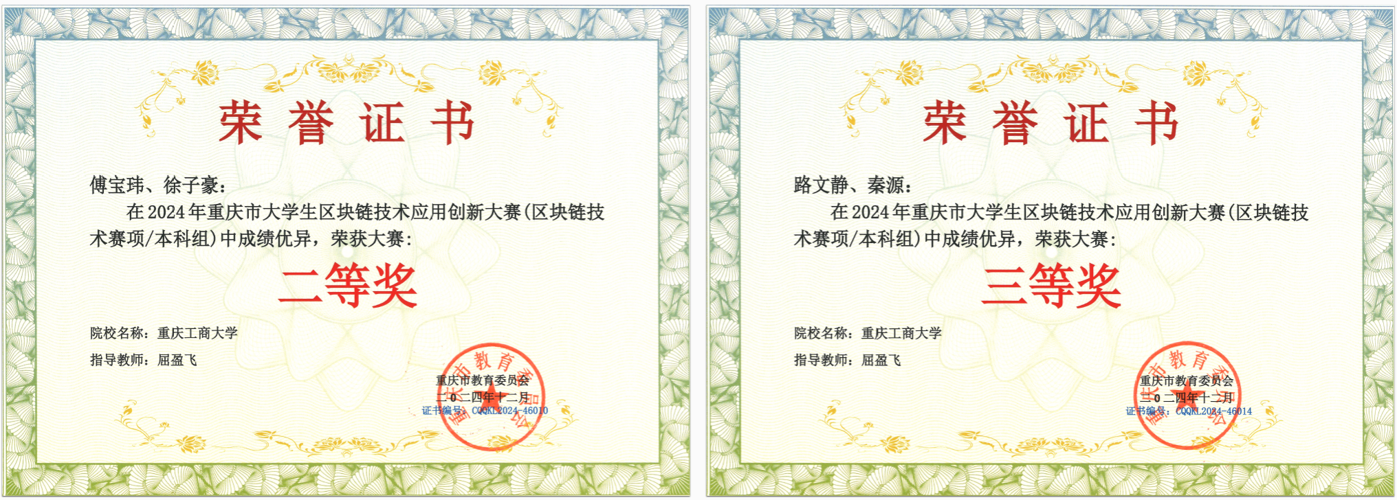 在比赛中,公司参赛学子通过刻苦努力和团队协作,最终全部获奖。其中,张志诚、曾辉、黄雅婷、罗渝川、傅宝玮、徐子豪6位同学荣获二等奖,路文静、秦源2位同学获得三等奖。通过这次赛事,员工们不仅加深了对区块链技术的理解与应用,还锤炼了系统思维与创新思维,为未来的职业发展打下了坚实的基础。
