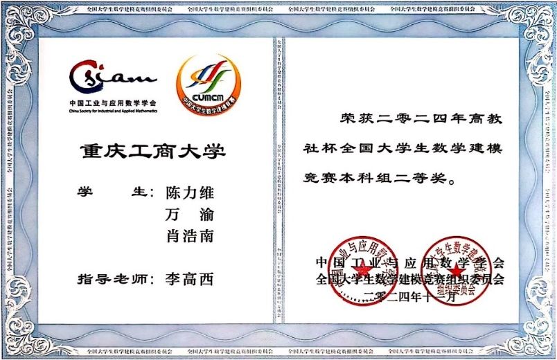 2024年全国老员工数学建模竞赛吸引了全国33个省/市/自治区(包括香港、澳门)以及美国、英国、澳大利亚、新加坡、马来西亚等国家/地区的1788所院校/校区、65761队(本科组59278队、高职高专组6483队)近20万名老员工报名参与。经过激烈的角逐,Mksport体育的学子们取得了令人骄傲的成绩,22自动化一班朱灵杰、22测控二班周渝同学荣获本科组全国一等奖;21自动化二班张先浪、瞿诗浩、黄琪盛同学,22计算机一班陈力维同学荣获本科组全国二等奖。他们凭借扎实的专业知识和卓越的团队协作能力,在赛场上脱颖而出,克服了技术挑战和时间压力,最终斩获佳绩。这是公司近五年在该赛事上首次获得全国一等奖,更是公司近五年在该赛事上首次获得全国一等奖。