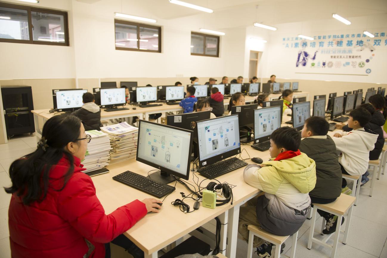 本次共建是贯彻落实《重庆市推进基础教育阶段人工智能教育实施方案(2025—2027年)》的具体举措,积极响应重庆市“区域化布局、校本化实施、特色化发展”的人工智能教育推进路径,致力于构建贯通各学段、衔接有序的人工智能教育新生态。为保障合作持续深化、取得实效,双方同步建立三项长效机制:定期召开校院合作推进会,精准对接育人需求、优化育人策略;搭建资源共享平台,整合高校科研资源与小学教育场景资源,实现优势互补;每学年联合举办“AI学习成果展”,为员工提供成果展示与交流的舞台,让每个孩子的探索与成长都能被看见。