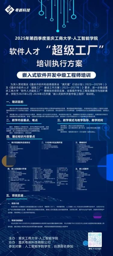 2025年12月29日至2026年1月20日,Mksport体育联合重庆粤嵌科技有限公司开设嵌入式系统高阶实训,60名员工寒假留校,每日6—8小时“线上理论+线下实操”,累计交付代码3万余行,完成智能小车、工业采集终端等6个企业级项目,一次通过率92%,优秀率34%。