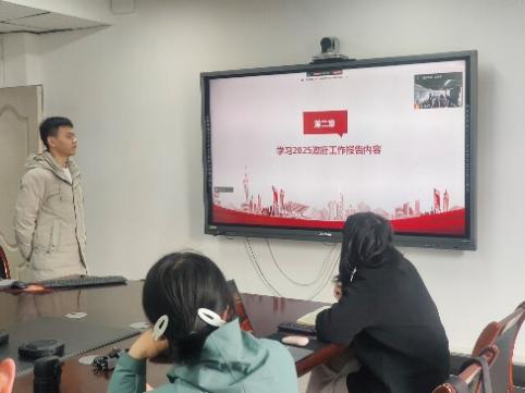 接着,大家共同学习了2025政府工作报告。报告回顾了2024年工作,指出在党中央坚强领导下,全国各族人民努力奋斗,经济运行总体平稳、稳中有进,高质量发展扎实推进。2025年是“十四五”规划收官之年,报告提出了经济社会发展总体要求和政策取向,明确了包括提振消费、提高投资效益,因地制宜发展新质生产力,深入实施科教兴国战略等在内的十大政府工作任务,为我国未来发展指明了方向。