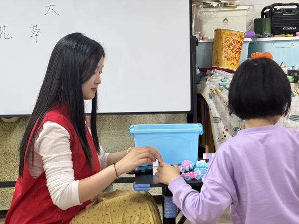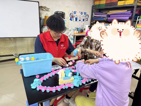 活动当天,同志们为这些孩子带来了很多玩具,在一个温馨的小教室里,大家围坐在一起,陪伴孩子们玩耍、交流。五彩的积木在他们手中变成了高楼、城堡、飞船,承载着他们天马行空的想象力。同志们耐心地倾听他们稚嫩的讲述,虽然语言不是很清晰流畅,但他们的眼神里满是信任和期待。在轻松的氛围中,孩子们逐渐敞开心扉,脸上洋溢着纯真的笑容,现场温暖而感动。
