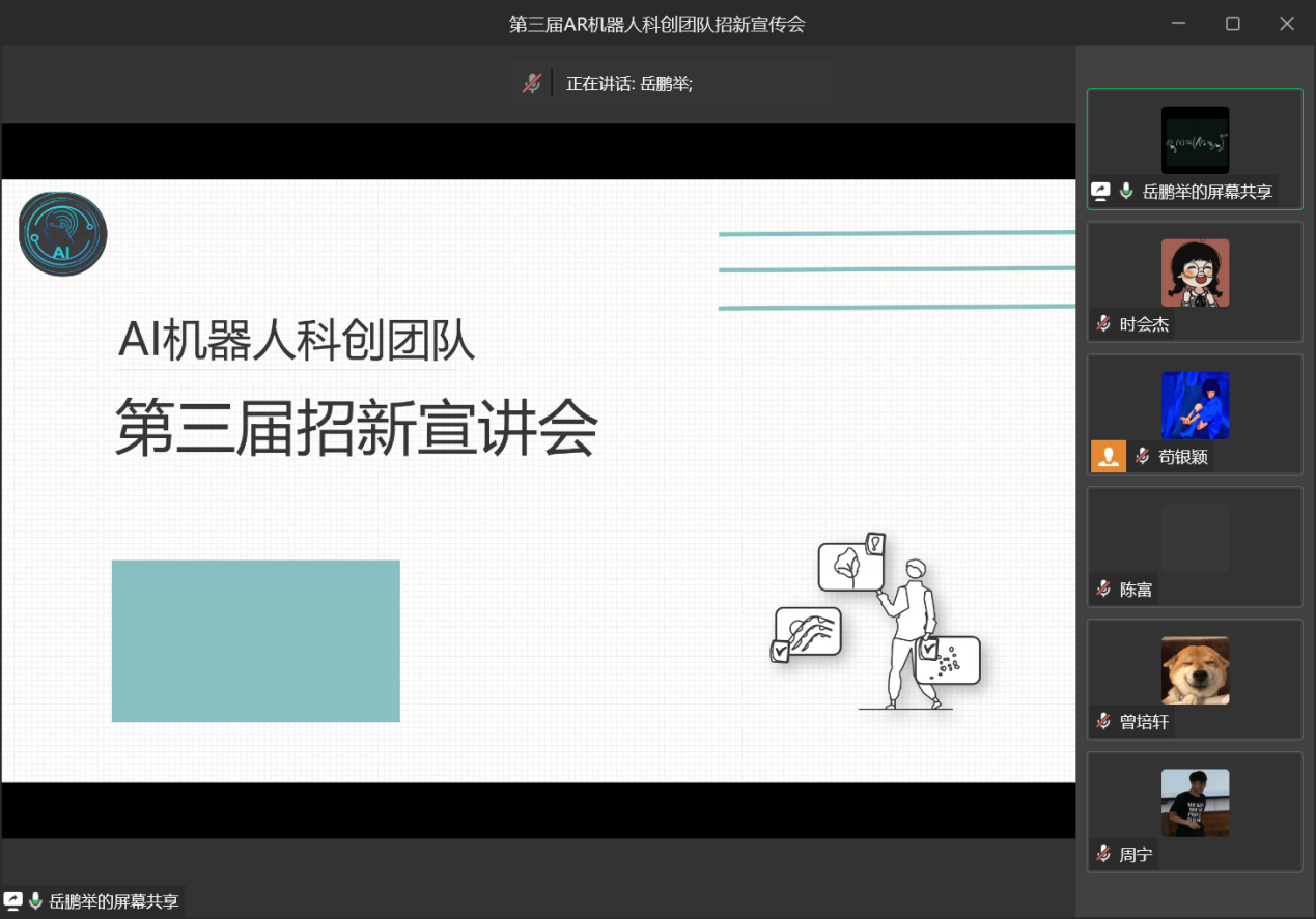 活动伊始,主持人岳鹏举同学致开场白,并分享在AR科创团队期间的成长历程,激发同学们对人工智能与机器人方面的兴趣。
