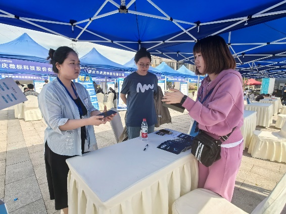 在双选会现场,公司毕业班辅导员与企业代表积极沟通,了解企业的用人需求和岗位特点,并为员工提供针对性的选岗建议和职业规划指导。