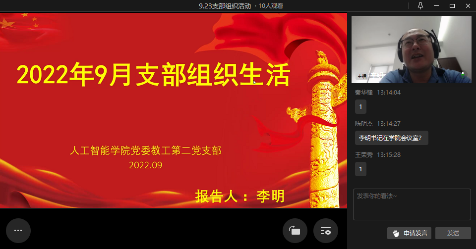 2022年9月23日Mksport体育教工二支部在企业微信以线上会议的方式开展九月份支部组织生活,活动由支部书记李明同志主持。