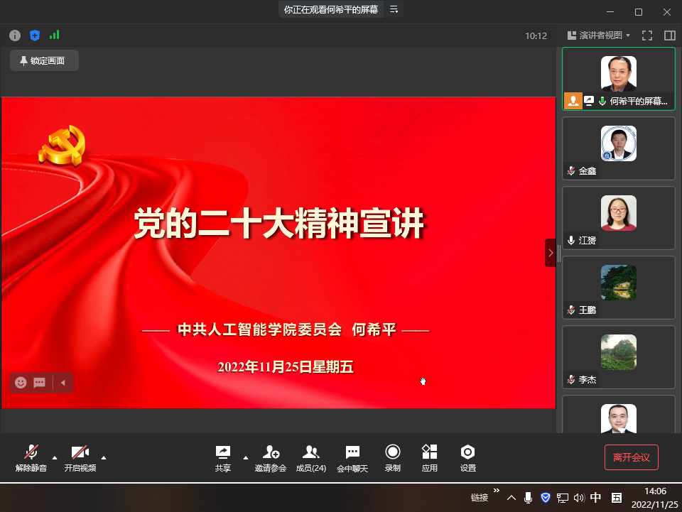2022年11月25日下午,Mksport体育教工第一党支部于线上开展了“学报告学党章,宣传贯彻二十大”主题党日活动。活动由Mksport体育教工第一党支部书记江赟同志主持,支部全体党员参加会议。
