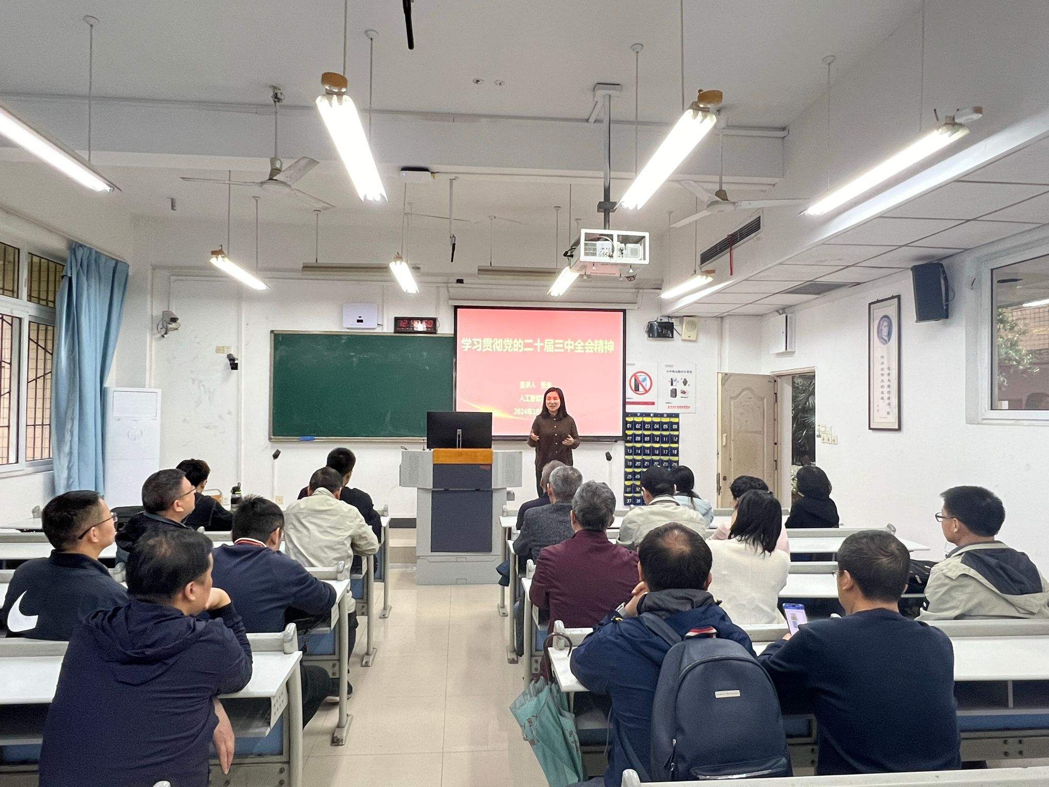 为深入学习党的二十届三中全会精神,扎实做好全会精神贯彻落实,10月10日中午,机械工程公司党委副书记张未在慧智楼90201教室为教工第二党支部全体党员、测控与自动化系、电子系全体教师作了一次全面细致精彩的全会精神宣讲。