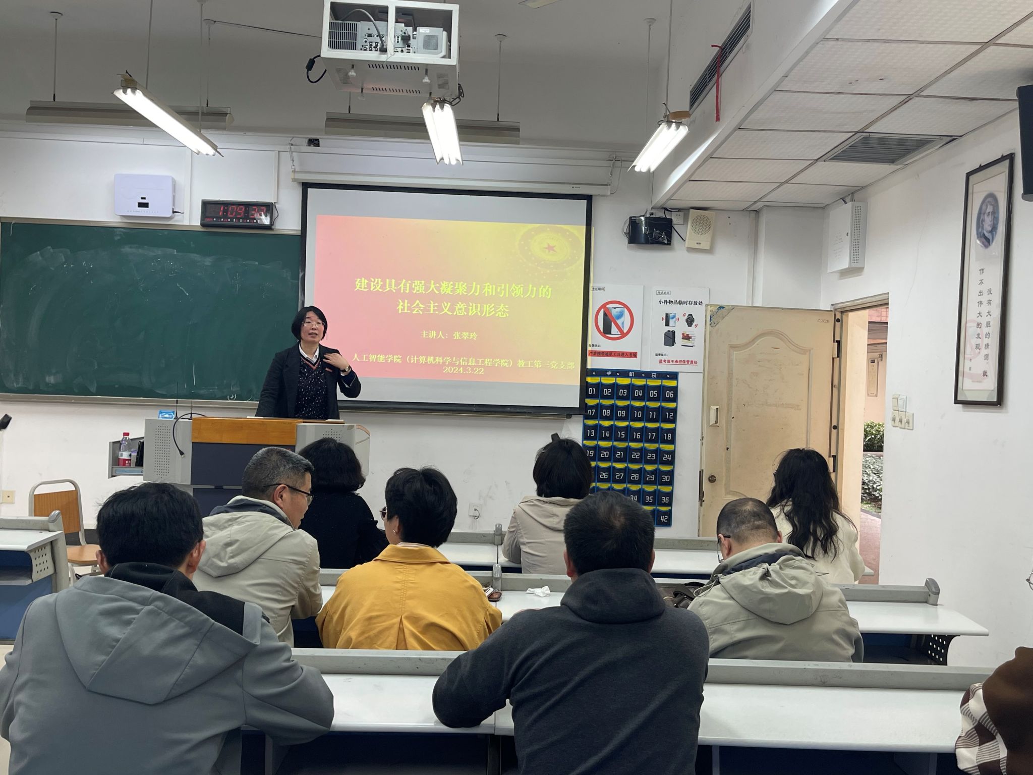 第二阶段张翠玲以《建设具有强大凝聚力和引领力的社会主义意识形态》为题讲党课,党课围绕“为什么意识形态工作是党的一项极端重要的工作”、“如何看待意识形态领域形势的复杂性”、“新时代如何牢牢掌握意识形态工作领导权”和“如何打赢网络意识形态斗争”四个方面展开 ,强调意识形态对一个政党、一个国家、一个民族的生存发展至关重要,面对意识形态领域复杂的形势和严峻的挑战,要用习近平新时代中国特色社会主义思想武装全党,不断增强意识形态领域主导权和话语权,不断提升党、国家和民族的凝聚力、向心力。