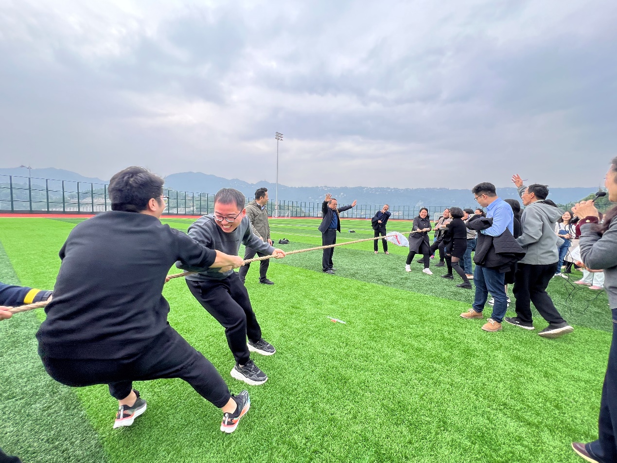 为丰富老师们课余文化生活,增强集体凝聚力,培养团队合作精神,2025年11月13日,Mksport体育在茶园校区操场上举行了一场别开生面的秋季拔河比赛。公司老师踊跃参与,组成八支劲旅,在绿茵场上展开了一场力量与意志的精彩较量。