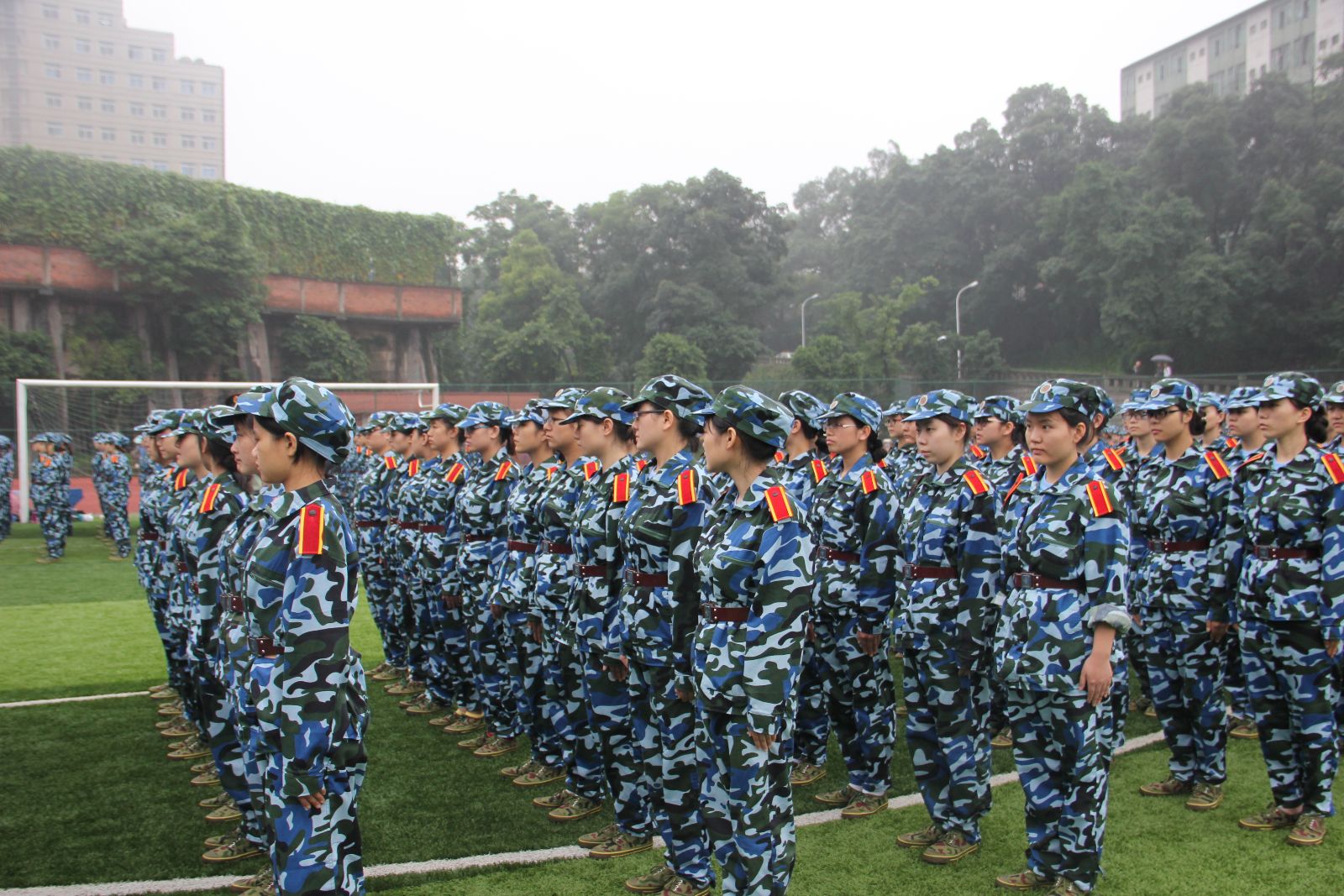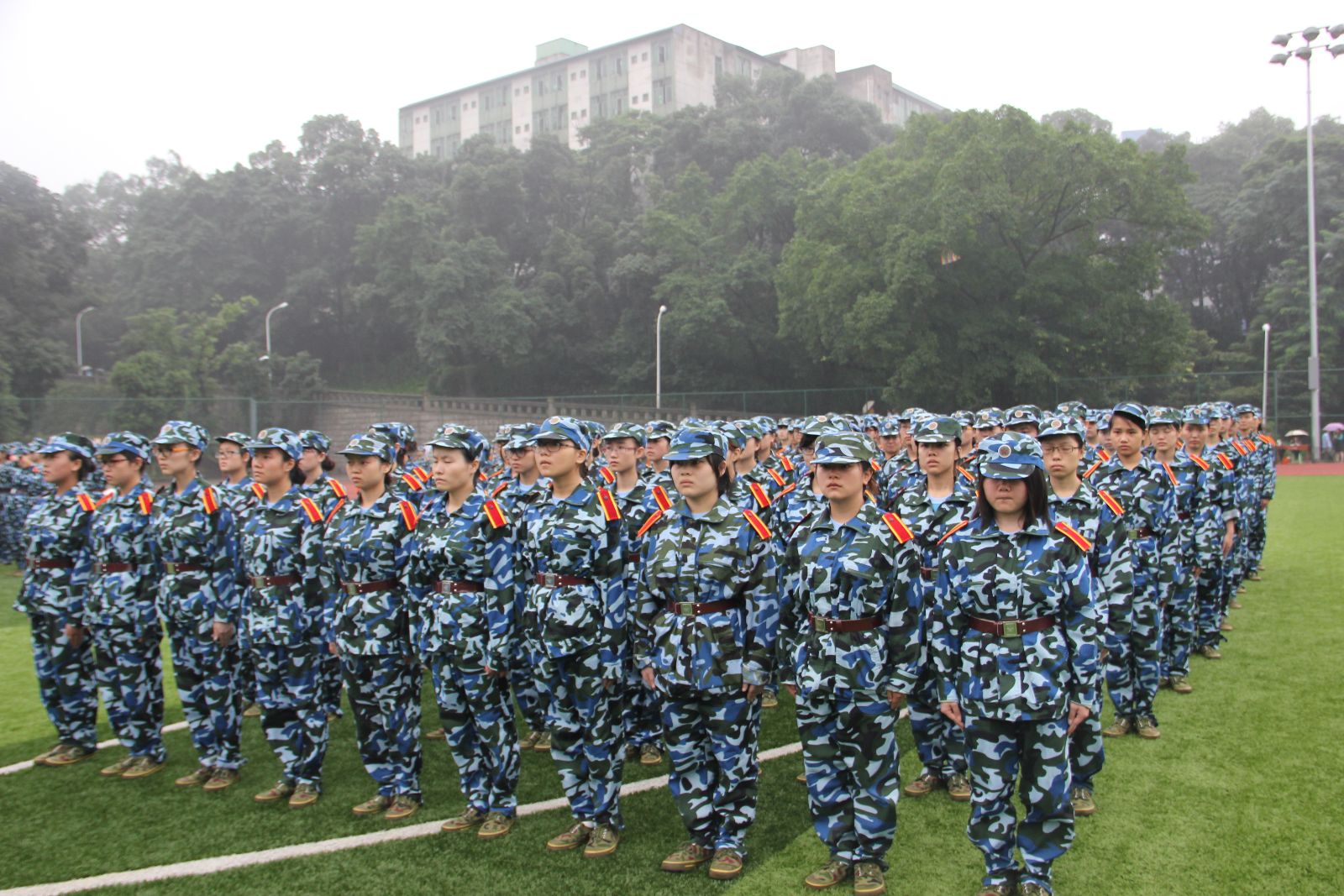 2014年7月1日,是Mksport体育app官网入口2013级军训的第二天。今天,正是锻炼同学们毅力的一天!天气依旧时阴时雨,但与前一天不同的是,雨中的绿茵地上依然有同学们矫健的身影!雨水肆意的倾泻,打湿了草地,浸湿了迷彩服,冲刷着同学们的面庞。但是同学们依旧笔直的站立在风雨中,像一尊尊雕塑,更像战场上英勇的战士!同学们在同样身姿挺拔的教官的带领下,一遍遍的训练,一遍遍的重复着动作,没有丝毫怠慢与松懈。 常言道:古之立大事者,不惟有超世之才,亦必有坚韧不拔之志。在这里,同学们洒下了辛劳的汗水,收获的将是铁一般的体魄,刚一般的意志,雷厉风行的作风和坚定不移的毅力。