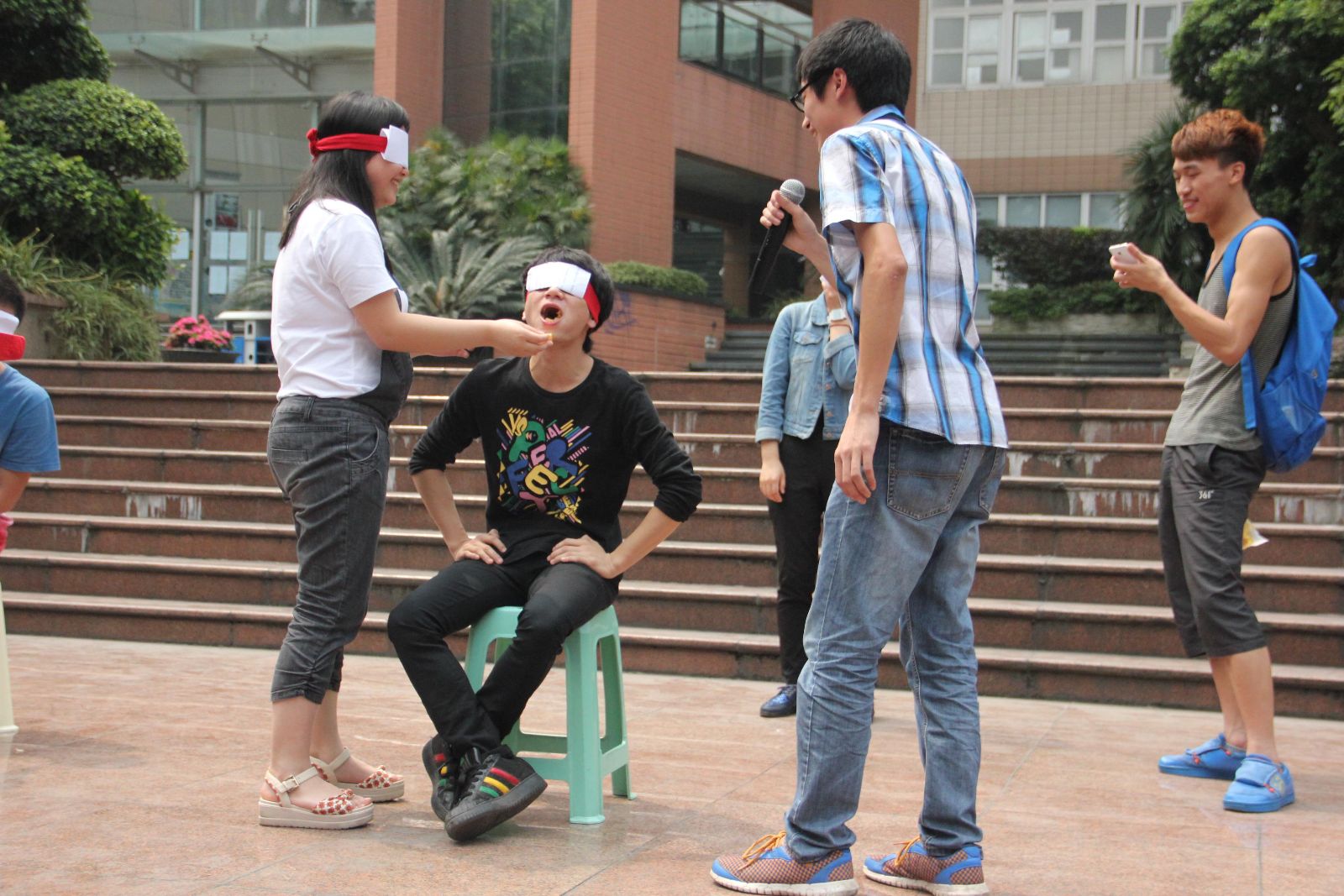 有趣的蒙眼喂水果游戏环节