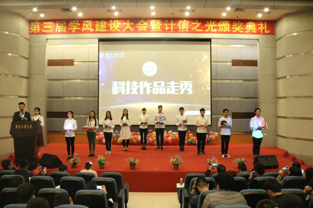 在主持人开场致辞,介绍到场嘉宾之后,播放了往届“计信之光”评选和获奖视频,展现了莘莘学子专研科创,积极志愿,发扬文体的荣誉风貌。本次“计信之光”共设立“学业之光”、“科创之光”、“文体之光”、“志愿之光”等四个奖项,公司领导依次为获奖同学颁发奖状。其中获得“科创之光”的两位同学也分享了他们的心得与经验,并呼吁和鼓励同学们积极参加各种科创活动。在第一轮颁奖结束后,文艺部的同学带来的一首歌曲《仰望星空》,再次将活动带向高潮。接下来颁发的“先进班集体”和“优良学风班”的奖项也激励了同学们应更加重视和加强优良学风的建设。活动的最后,一场精彩的科技作品走秀让全体出席人员耳目一新,至此,此次颁奖典礼圆满结束。