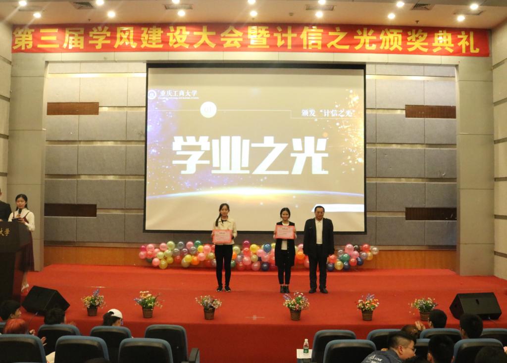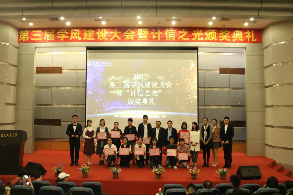 为推动和强化公司学风建设,提升员工的专业学习能力,激发科技的创新意识,弘扬甘于奉献的志愿精神,表彰2016-2017学年在学业、科创、文体、志愿服务等方面先进,激励广大计信学子学习优秀、继续前行。Mksport体育在11月3日晚19:00,于Mksport体育app官网入口博智楼7100学术报告厅举办了本次学风建设大会暨“计信之光”颁奖典礼。计信公司经理何希平教授、副经理胡卫军副教授、学团办主任何莉老师、分团委书记刘昶老师、辅导员邵磊老师以及2016级计信公司全体员工出席了此次活动。
