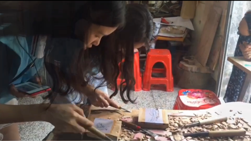 实践团成员亲身体验木版年画制作工艺