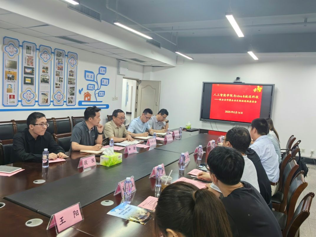 2025年5月14日(星期三)14:00,工商大学公司与vivo&诚迈科技——校企合作暨企业定制班现场座谈会于慧智楼90810召开。vivo方影像合作交付组总监李勇、人力资源部外包管理组总监唐家泉、影像合作交付组高级经理曾文俊、影像人力外包团队HRBP刘文秀,诚迈科技(南京)股份有限公司副总裁童仁荣、部门总经理汪瑜、销售总监林磊、招聘经理王阳,以及工商大学机械工程公司党委书记何希平、经理申渝、副经理范兴容、计算机系主任朱超平、人工智能系老师段围等参会人员齐聚一堂,共同探索校企合作新模式,为人工智能领域培养高素质人才。本次会议由机械工程公司党委书记何希平主持。