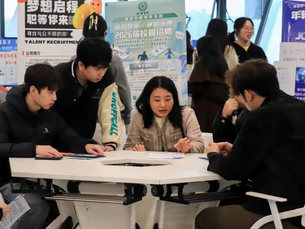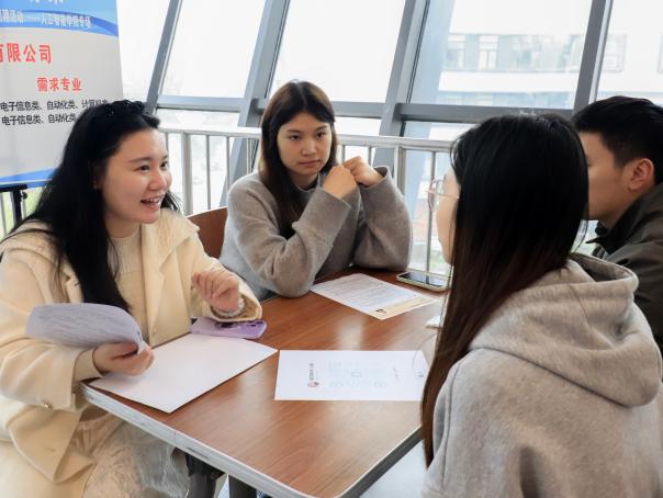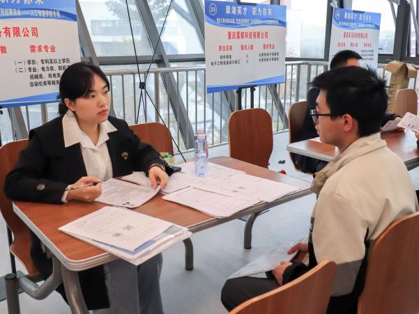 现场互动热烈,求职指导贴心。招聘会现场,各企业展位前均清晰公示岗位薪资区间、任职资格及发展通道。毕业生手持精心准备的简历,有序驻足各展位,围绕工作内容、晋升机制、薪资福利等核心问题与企业招聘代表进行交流。
