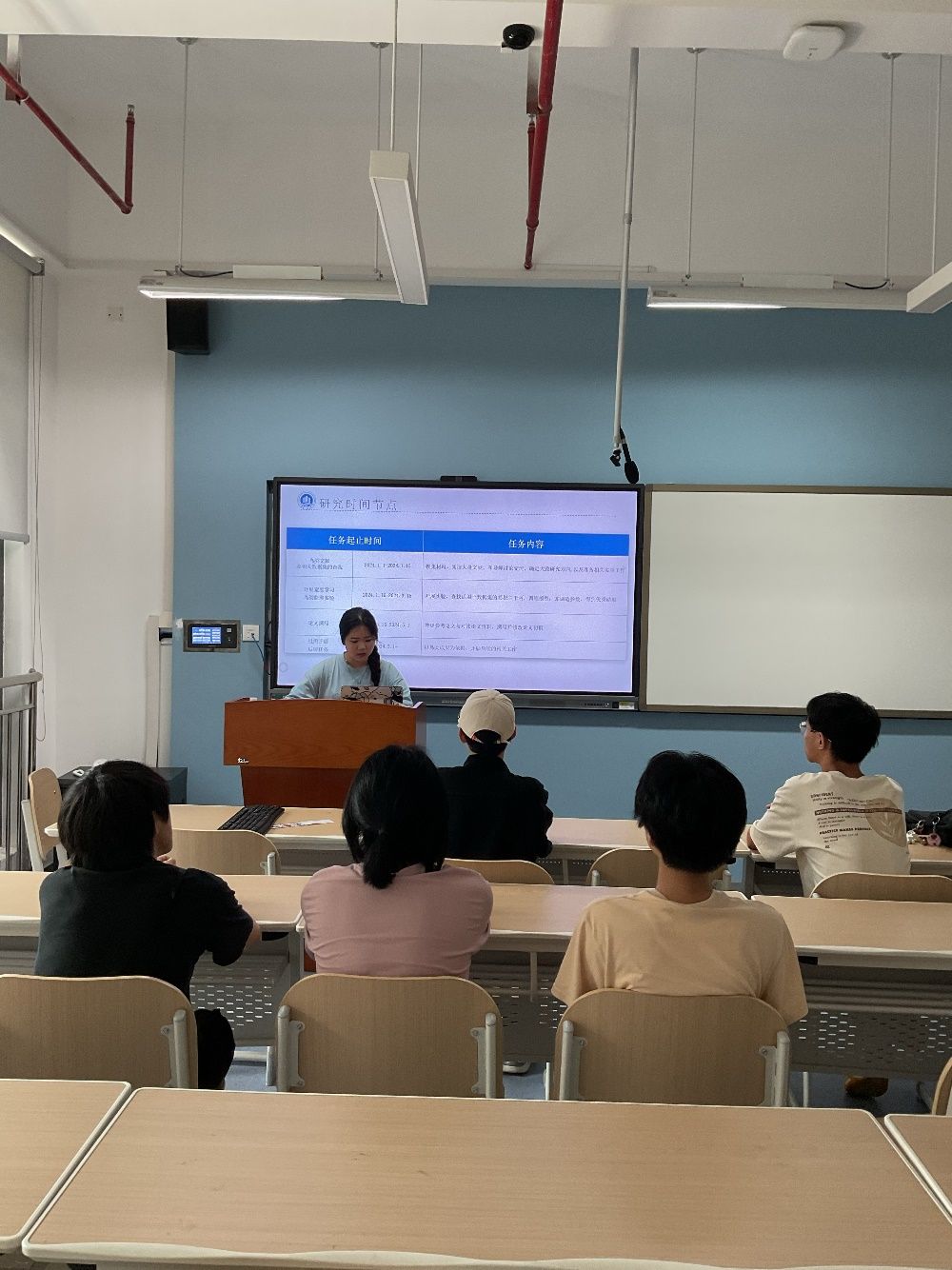 紧接着,2022级测控技术与仪器专业本科生邓雨荷同学,为大家带来了课题研究的前期准备环节。她分享了文献检索、筛选的技巧和数据集的寻找方法,并对前期准备工作的重要性进行了强调。邓雨荷同学的讲解既细致又风趣,极大地激发了同学们的学习热情。