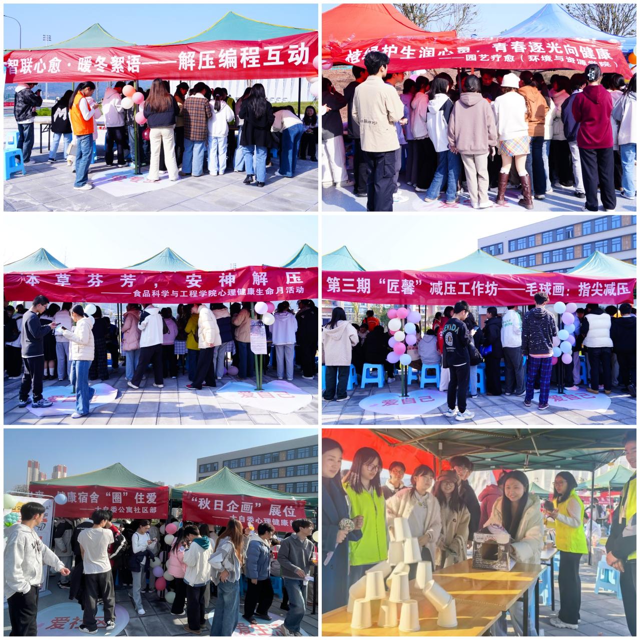 作为公司深化“一站式”员工社区综合管理模式建设的重要举措,本次活动以“关爱生命健康,绽放青春光彩”为主题,深度融合茶园校区四大工科公司的专业特色,精心规划出“爱自己、爱生活、爱公司、爱社区、爱专业”五大互动展区。在“爱自己”展区内,毛球画指尖解压让同学们在色彩拼贴中找寻内心平静,本草安神手工则借助中草药香囊制作,传递传统养生智慧。“爱生活”展区人流如织,“秋日企画”鼓励大家用创意拼贴捕捉季节之美;“解忧杂货铺”则通过匿名倾诉与互助建议,成为同学们释放压力、获取支持的有效窗口。“爱公司”展区的园艺种植活动,让师生在亲近自然时感悟生命成长。“爱社区”展区的安全“慧眼”套圈游戏,巧妙地将安全知识融入趣味互动,旨在提升员工的安全防范意识。在“爱专业”展区,解压空气大炮让师生通过参与物理实验释放压力,感受科学乐趣;编程解压互动则借助数字技术,为情绪疏导与压力管理开辟了新路径。除上述各展区准备的精美小礼品外,同学们还参加了贯穿全程的趣味游园集章活动,完成相应任务即可参与惊喜抽奖,进一步增添了活动的互动性与吸引力。
