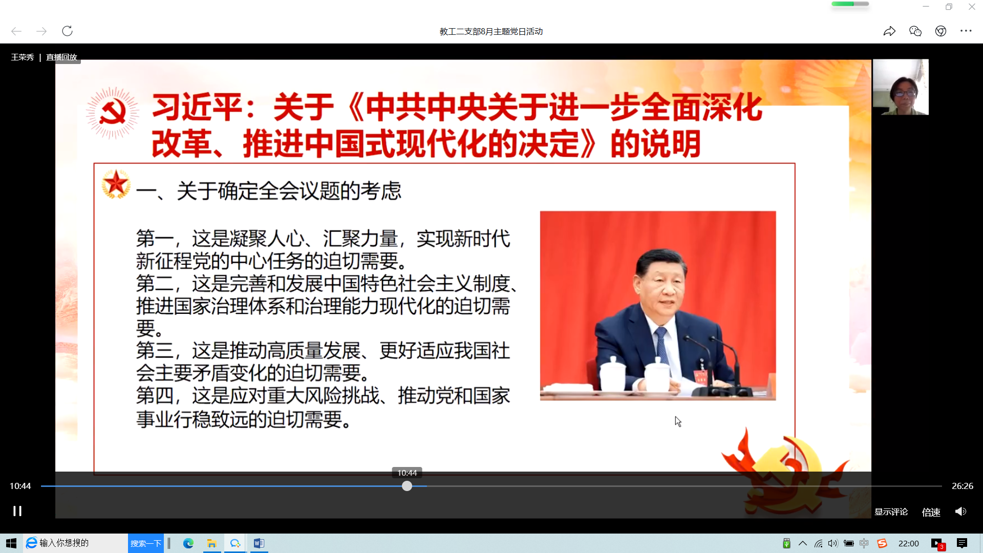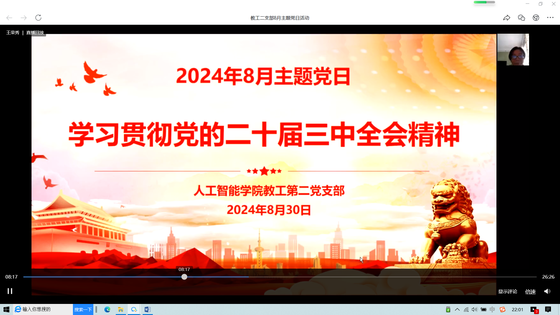 烈日炎炎,开学在即,2024年8月31日上午,​Mksport体育教工第二党支部通过企业微信直播课的形式组织了8月主题党日活动。本次活动的主要内容是学习贯彻党的二十届三中全会精神,做好本学期审核评估工作动员,保证开学期间的各项工作顺利进行。